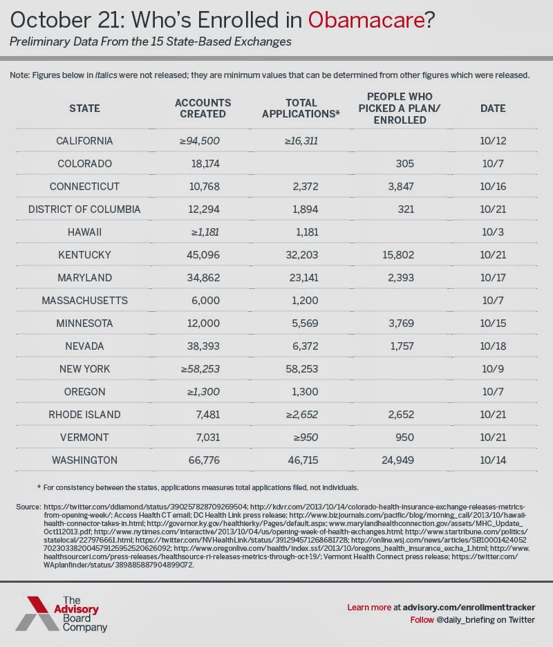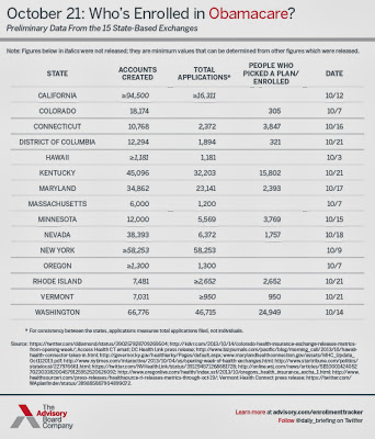 Health plans that might have told me last week that they had enrolled 400 people since October 1 are now telling me they had a "surge" in enrollment in recent days and are up to 600 people. I guess that takes us up to a trickle and a half.